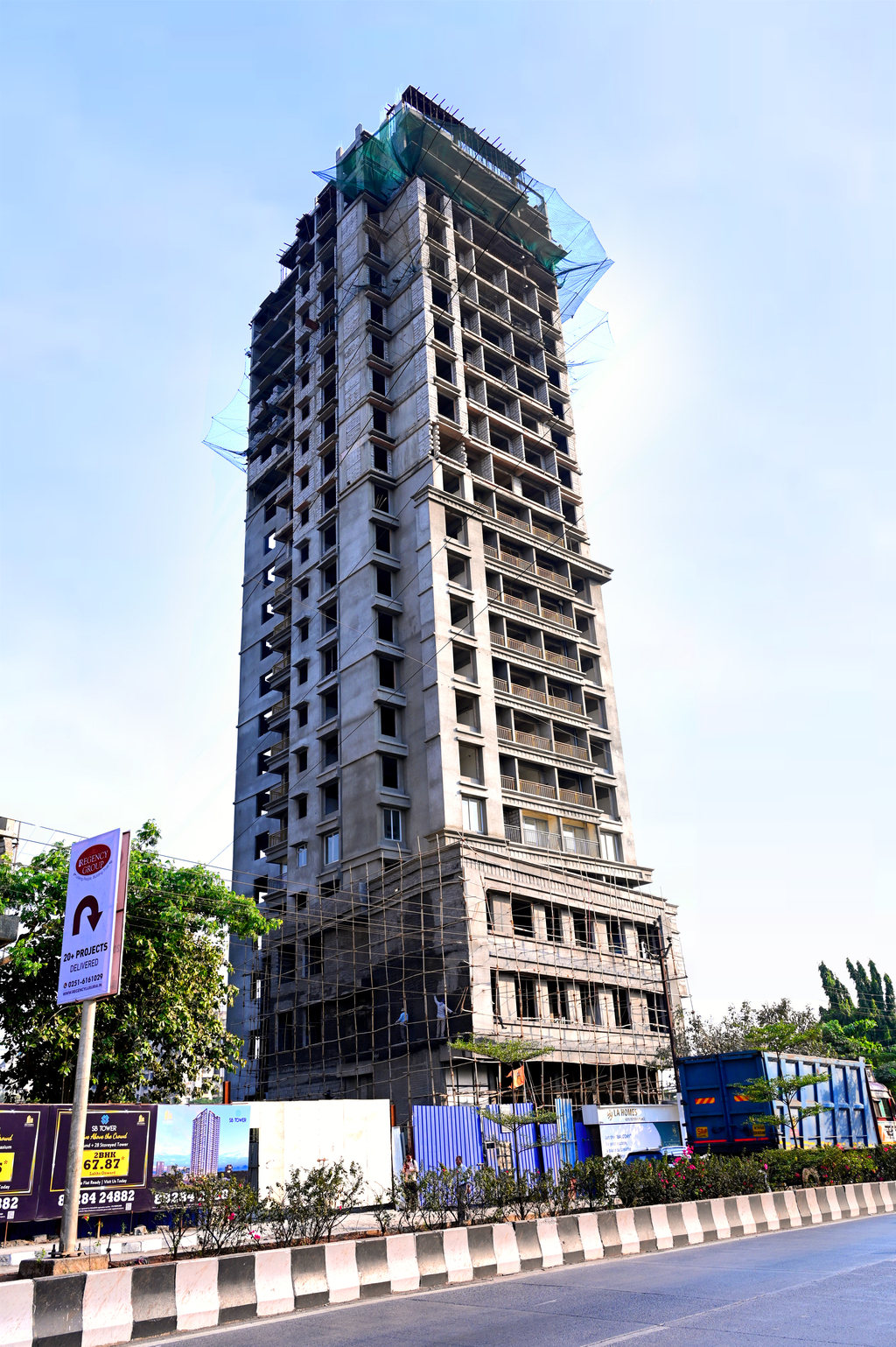 La Grandeur is a thoughtfully designed mixed-use development in Sonar Pada, Dombivli East, bringing together residential and commercial spaces in a compact and efficient layout. The project consists of a 22-storey residential tower with 1 and 2 BHK apartments ranging from 332 to 626 sq.ft., supported by a ground plus two-level (G+2) commercial podium that caters to retail and service businesses. The project is in its final stages of construction and is nearing completion, with interior and infrastructure works being finalized.